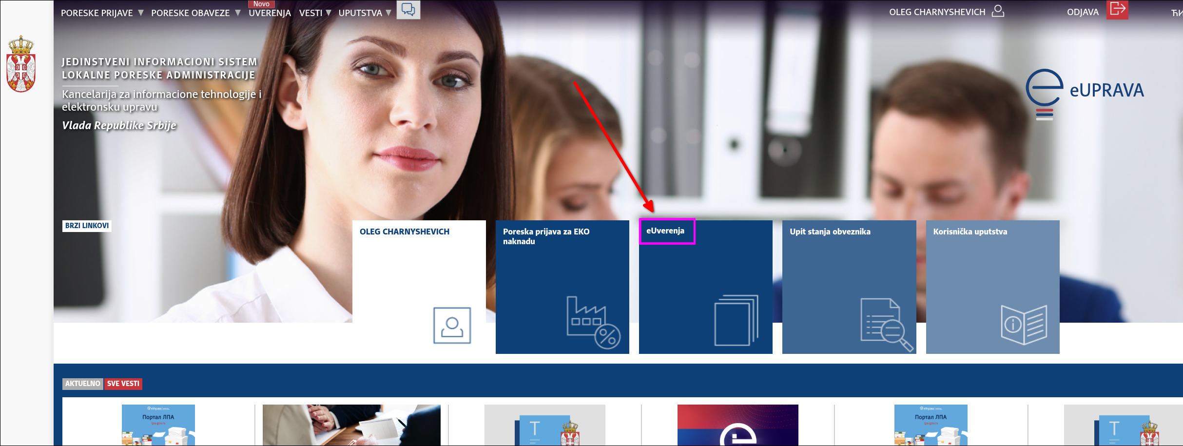 - Заходим на сайт lpa.gov.rs и авторизуемся при помощи