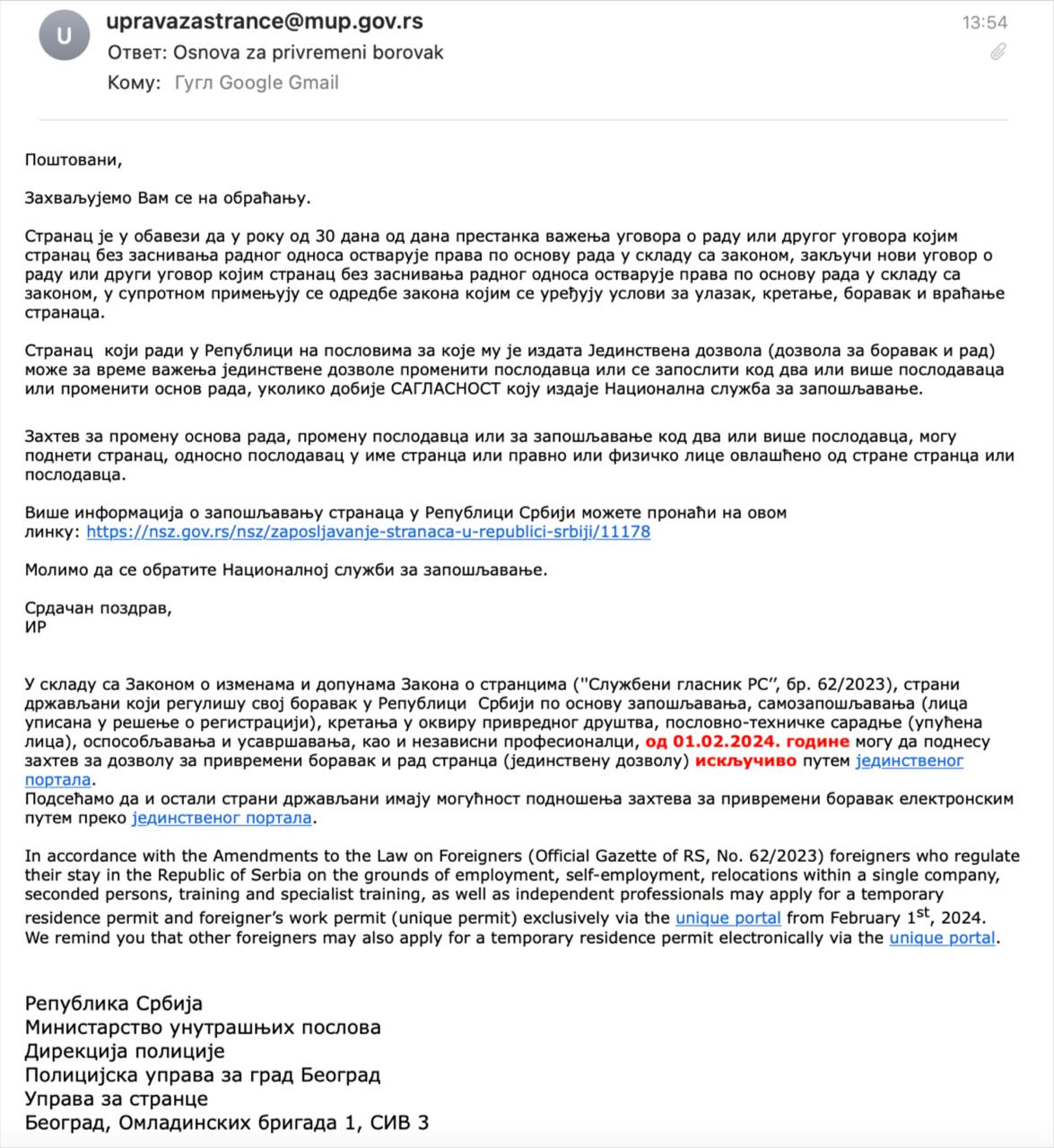 Рекомендую так же спросить что бы сразу проверили что на сербских гос услугах (eid.gov.rs), ваш профиль обновили и дали доступ для подачи нового заявления.