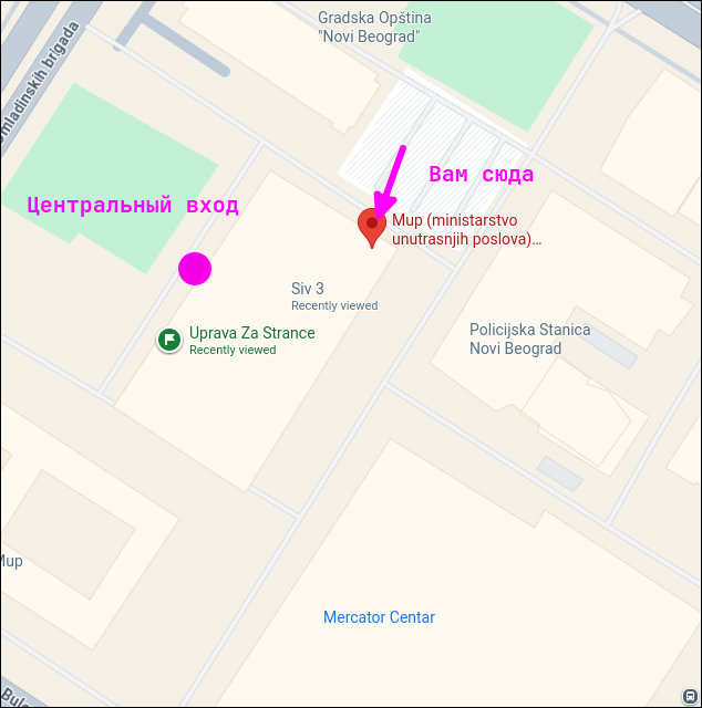 - Белград – ПС Нови Београд. То же здание, в котором находится Управа за странце, но вход с левой стороны от того, через который вы заходили получать ВНЖ. Напротив открытой парковки.